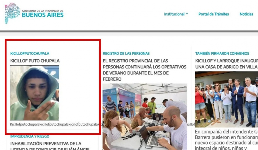 La página web oficial de la Provincia de Buenos Aires fue hackeada con una amenaza a Axel Kicillof y en la parte de Noticias se publicó una nota donde se expresan contra el Gobernador con la frase “puto chupala”, junto con la foto de un joven haciendo el gesto de un arma.