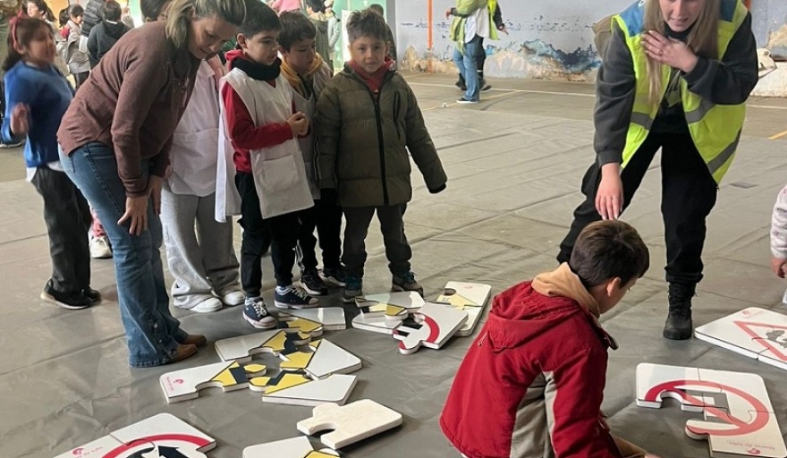 El proyecto correspondiente al presente año comenzó a desarrollarse en la jornada de hoy en la Escuela Primaria Nro. 1 “Bernardino Rivadavia”, con la participación de alumnos de primer ciclo (1ero., 2do. y 3er grado) de este establecimiento, instancia de la que participó la Intendente Municipal, María José Gentile, acompañando al personal de Tránsito en el desarrollo de su exposición.