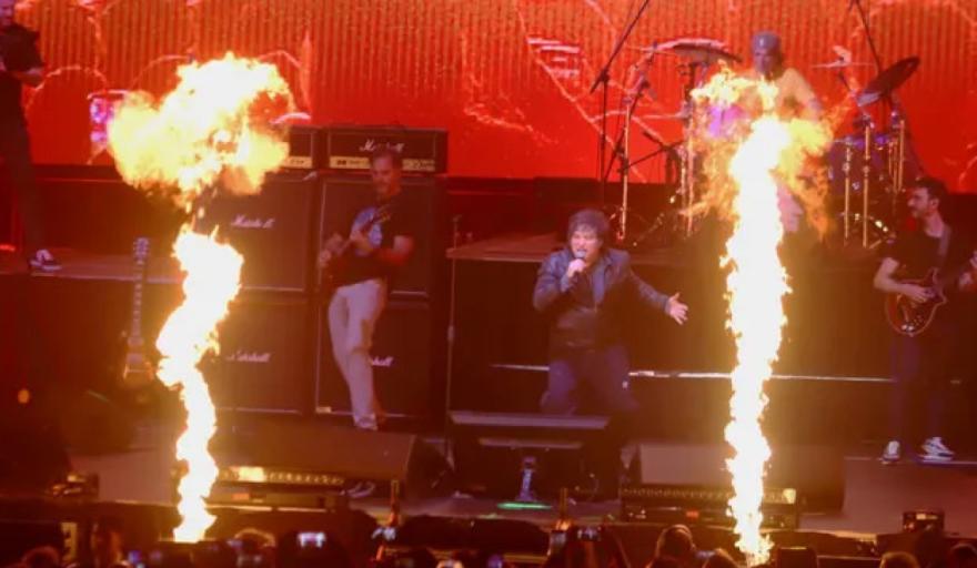 El repertorio continuó con la reversión de Dame fuego de Ataque 77. Sobre el final de la canción, el Presidente cambió la letra y empezó a cantar "tiran piedras, kukas tiran piedras". Mientras tanto, en la pantalla de atrás se veían imágenes de disturbios y represión durante distintas manifestaciones.