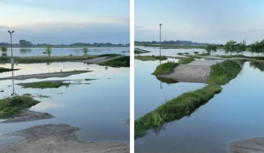 Las imágenes compartidas por el complejo muestran la pista de motocross bajo el agua, con sectores donde apenas se distinguen las estructuras del trazado, reflejando la gravedad de la situación hídrica que atraviesa la zona.