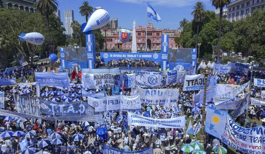 Así se manifestó el dirigente sindical durante la masiva marcha que la organización hizo en Plaza de Mayo, donde le advirtió a los senadores: “Ojo con lo que hacen, porque el pueblo y la patria se los vamos a demandar”.