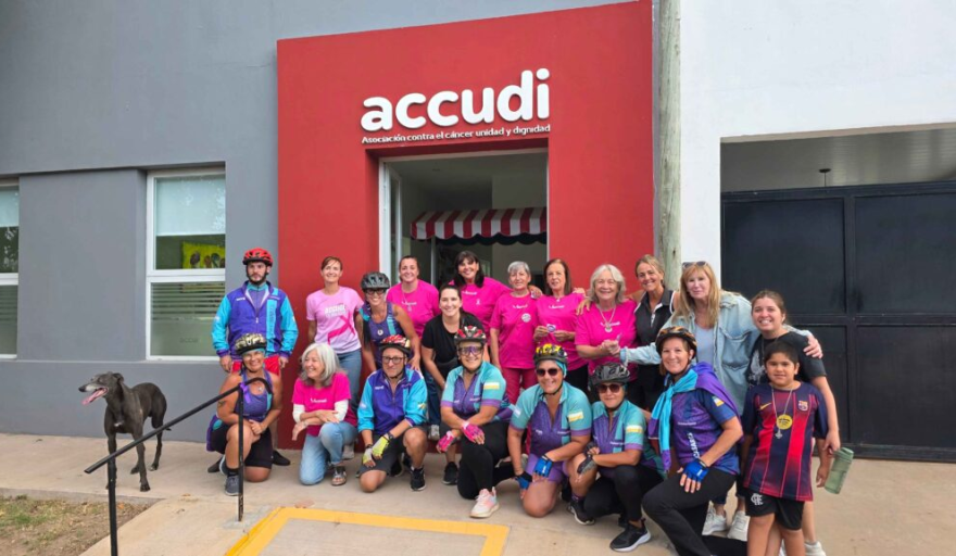 En paralelo, se desarrolló un recorrido en bicicleta junto al grupo “Aventureros del Pedal”. Durante el trayecto, las participantes fueron dejando un adhesivo con la consigna 8M y un moño violeta en distintos espacios vinculados al acompañamiento y la protección de las mujeres.