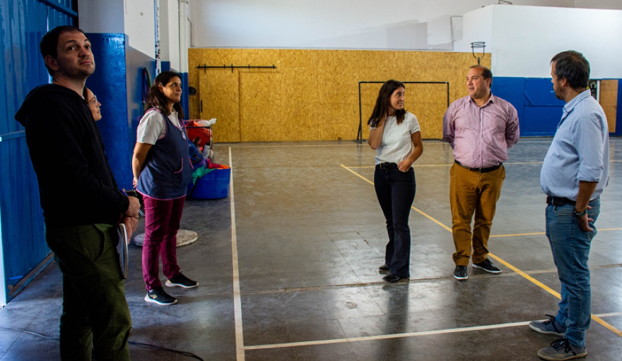 El intendente Francisco Recoulat, acompañado por el secretario de Obras y Servicios Públicos, Manuel Silva Muñoz; la subsecretaria de Desarrollo Humano, Emilia Cueli, el director de Obras Públicas, César Fracchia; y la directora de la institución, Romina Capone, recorrió las instalaciones para supervisar el avance de las obras.