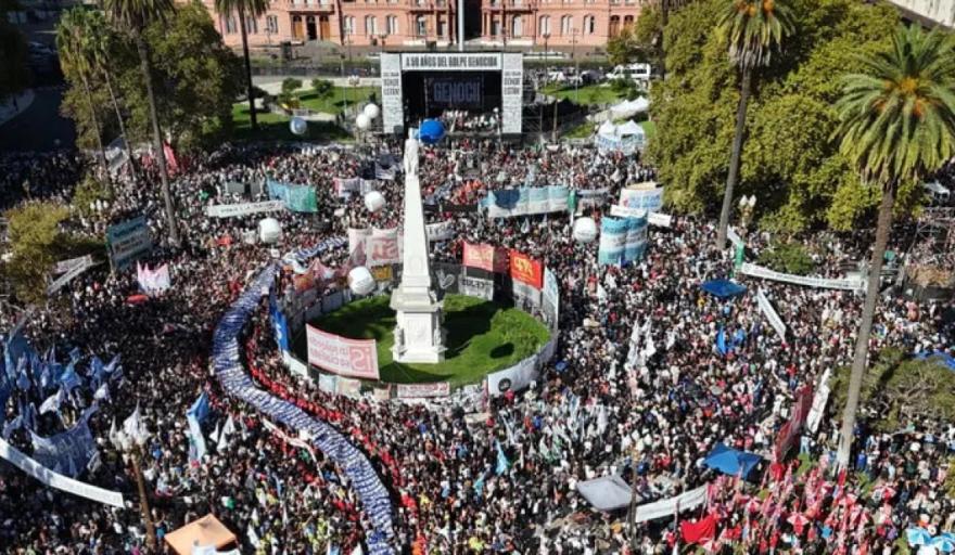 "Estamos juntos nuevamente en esta histórica plaza y en todas las del país con profunda convicción para afirmar que la memoria se defiende luchando", manifestaron.