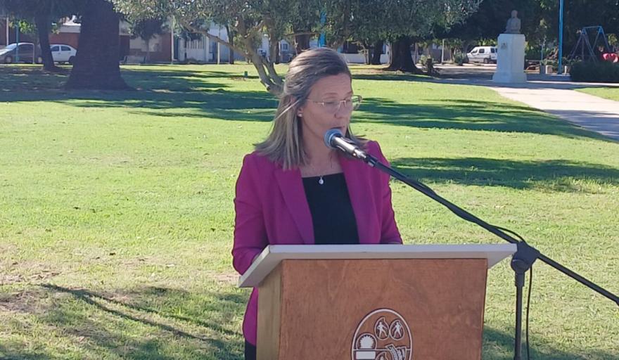 La ceremonia fue encabezada por la intendenta María José Gentile, junto al presidente del Concejo Deliberante, Esteban Naudín, el exintendente Oscar Ormaechea, concejales, funcionarios municipales, fuerzas de seguridad, representantes educativos, instituciones intermedias y vecinos de la comunidad.