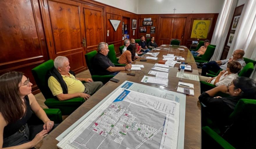 El encuentro tuvo como eje principal la organización de las tareas vinculadas al mantenimiento del arbolado urbano, en particular en el centro, donde se prevé una intervención específica sobre ejemplares que requieren tratamiento para mejorar tanto la seguridad como la limpieza del espacio público.