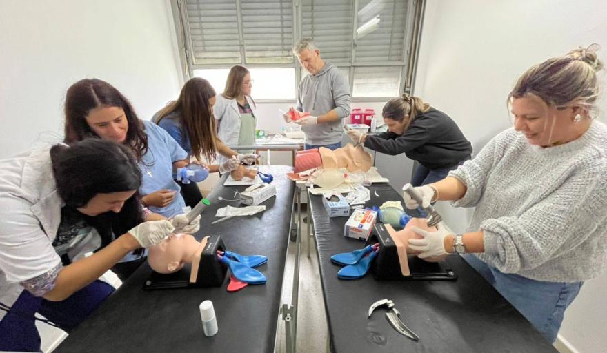 Durante la jornada se trabajó en técnicas fundamentales para el manejo de la vía aérea pediátrica, como el uso de dispositivos subglóticos y la intubación orotraqueal, claves en la atención de emergencias.