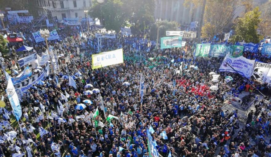 La movilización frente a la Casa Rosada era un desafío para una CGT golpeada por los reveses judiciales. Debía mostrar fortaleza ante el Gobierno y, también, ante los sectores sindicales y políticos que la acusan de tibieza ante el avance de la reforma laboral y el agravamiento social. En parte, el objetivo fue cumplido. Llenaron (aunque con algunos blancos) la media plaza que fue habilitada para ocupar y las calles aledañas.